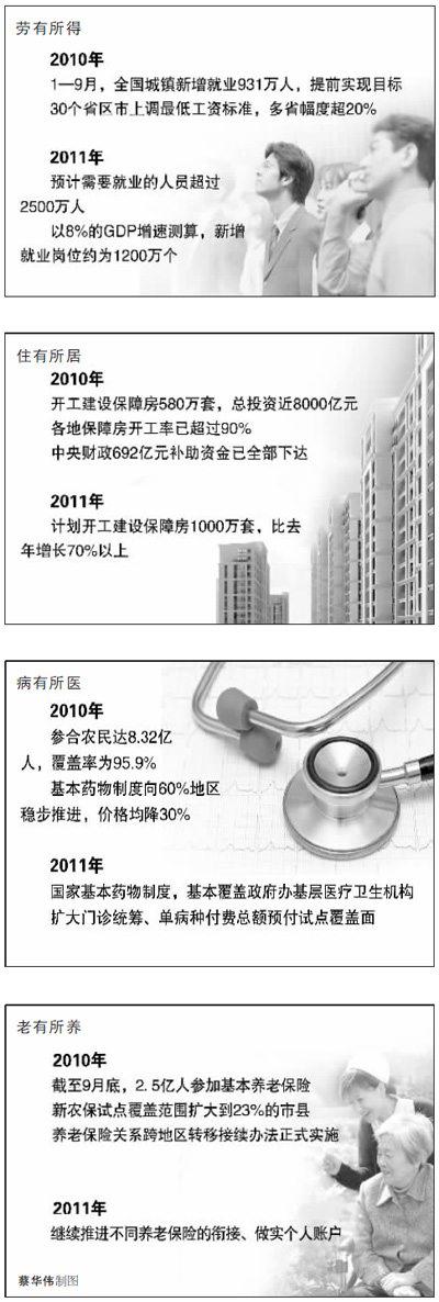 在改善民生上,要扎扎实实办几件实事——刚刚闭幕的中央经济工作会议传递出了强烈的保障和改善民生的信号。2011年,“十二五”规划开局之年,就业、住房、养老、医疗等民生领域将有什么具体举措?
