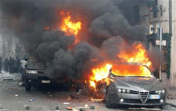 在罗马,大约十万民众参加抗议,不少示威者是学生,他们抗议政府最近宣布的大学改革方案。示威者焚烧汽车、投掷石块、掀翻垃圾桶,至少有40多名抗议者和50多名警察在冲突中受伤。