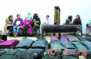 一群考生正在等待面试,地上摆满了古筝。 记者骆昌威 摄