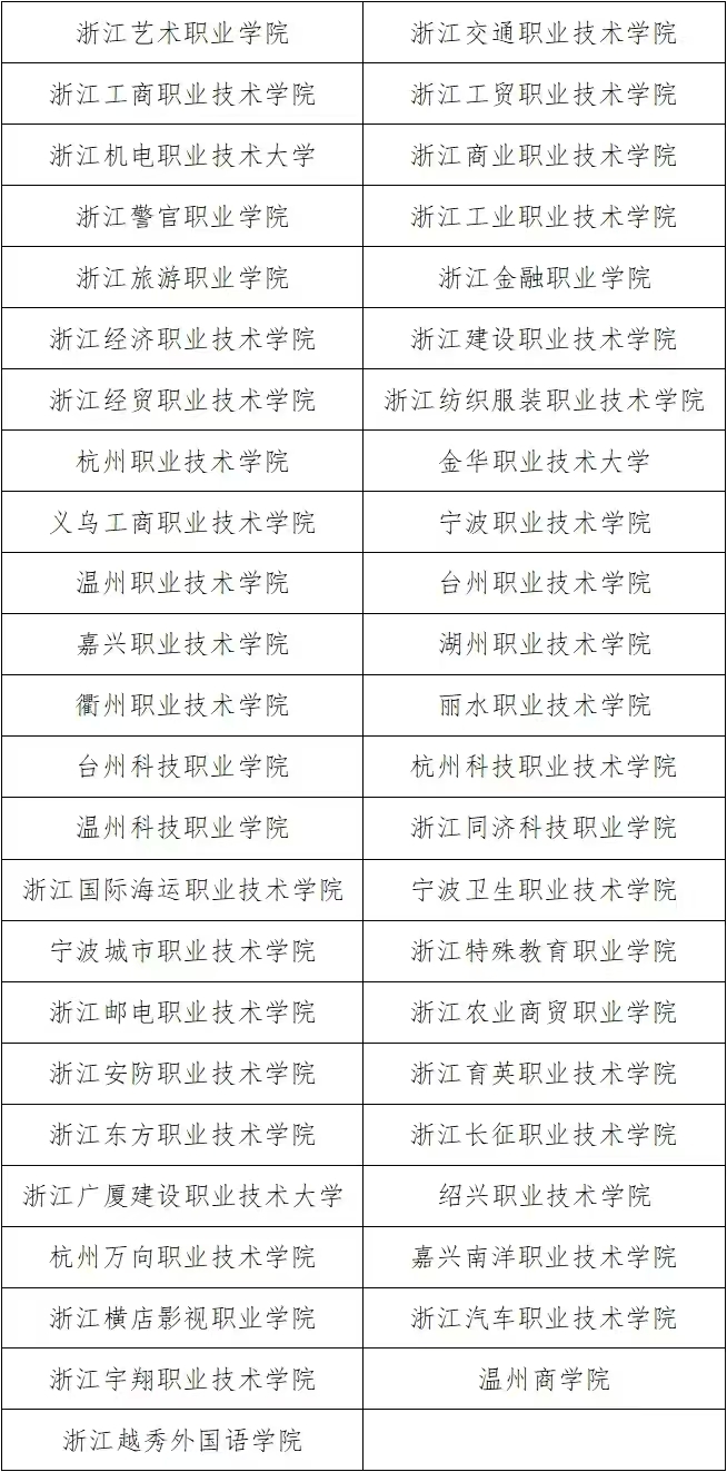 2025年浙江省高职提前招生试点高校名单