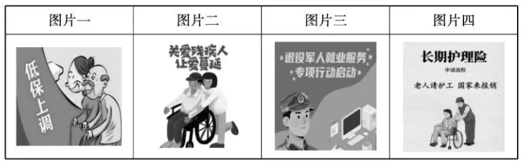 C.图片三反映了落实社会福利政策的重要措施 D.图片四的举措属于我国最高层次的社会保障
