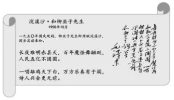 诗,是中国共产党光辉历史的生动写照。1950年,为庆祝新中国第一个国庆节,毛泽东欣然赋诗《浣溪沙。和柳亚子先生》,描绘了人民获得新生,实现大团结的欢乐场面。