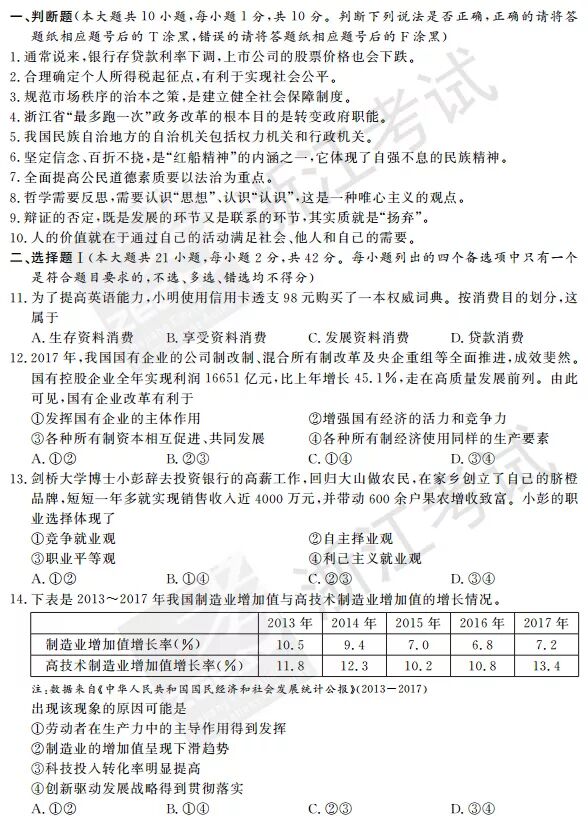 浙江省绍兴市2017届高三学考选考科目适应性考试历史试题